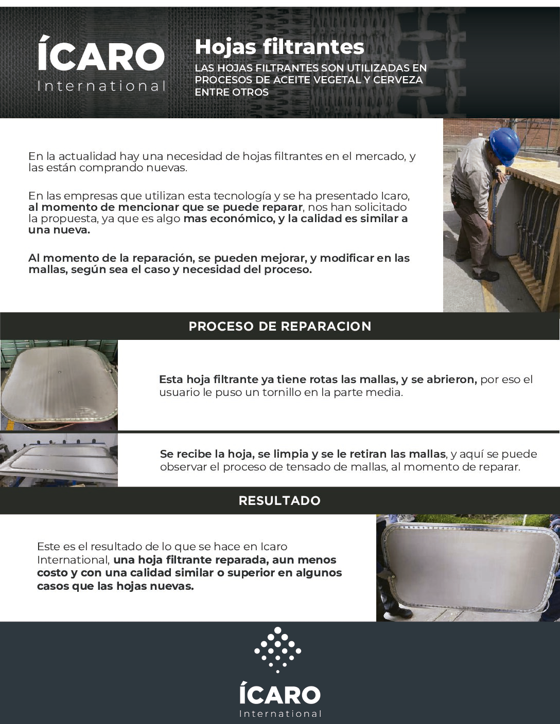Se fabrican a necesidades del proceso y también se reparan.
